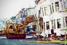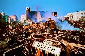 Amid all this chaos and destruction, the emotionally moving Marina walk-through was turning into more of a moving carnival back then. Stunned early risers bearing witness were being overtaken by hopped-up rollerbladers and O-C habitual joggers begrudging the detours. Dazed, clinging couples reorienting amid their smoldering possession were being crowded by site-seeing tourists snapping Kodak moments against said ruins. Smug, thrill-seeking couples from Cow Hollow cited their foresight in leasing on more solid ground; displaced Scott Street residents clutched meager belongings, vowing never to return here, now belonging nowhere at all…